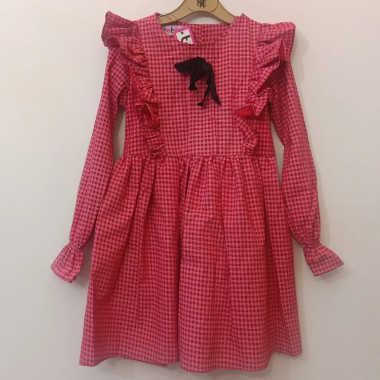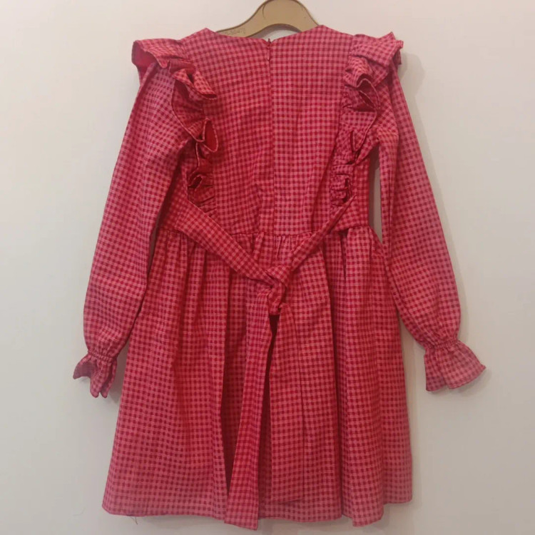 پیراهن دخترانه چهارخانه تک سایز مناسب برای چهار سال